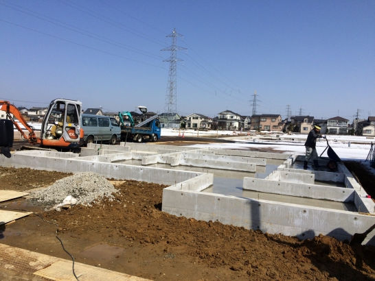 しっかりと地盤改良した上に、ベタ基礎を工事いたしました 。立ち上がり部分の幅は18㎝と2×6の部材をのせるためにかなり幅広くしてあります。頑丈な躯体をのせるために、一つも手を抜きません。